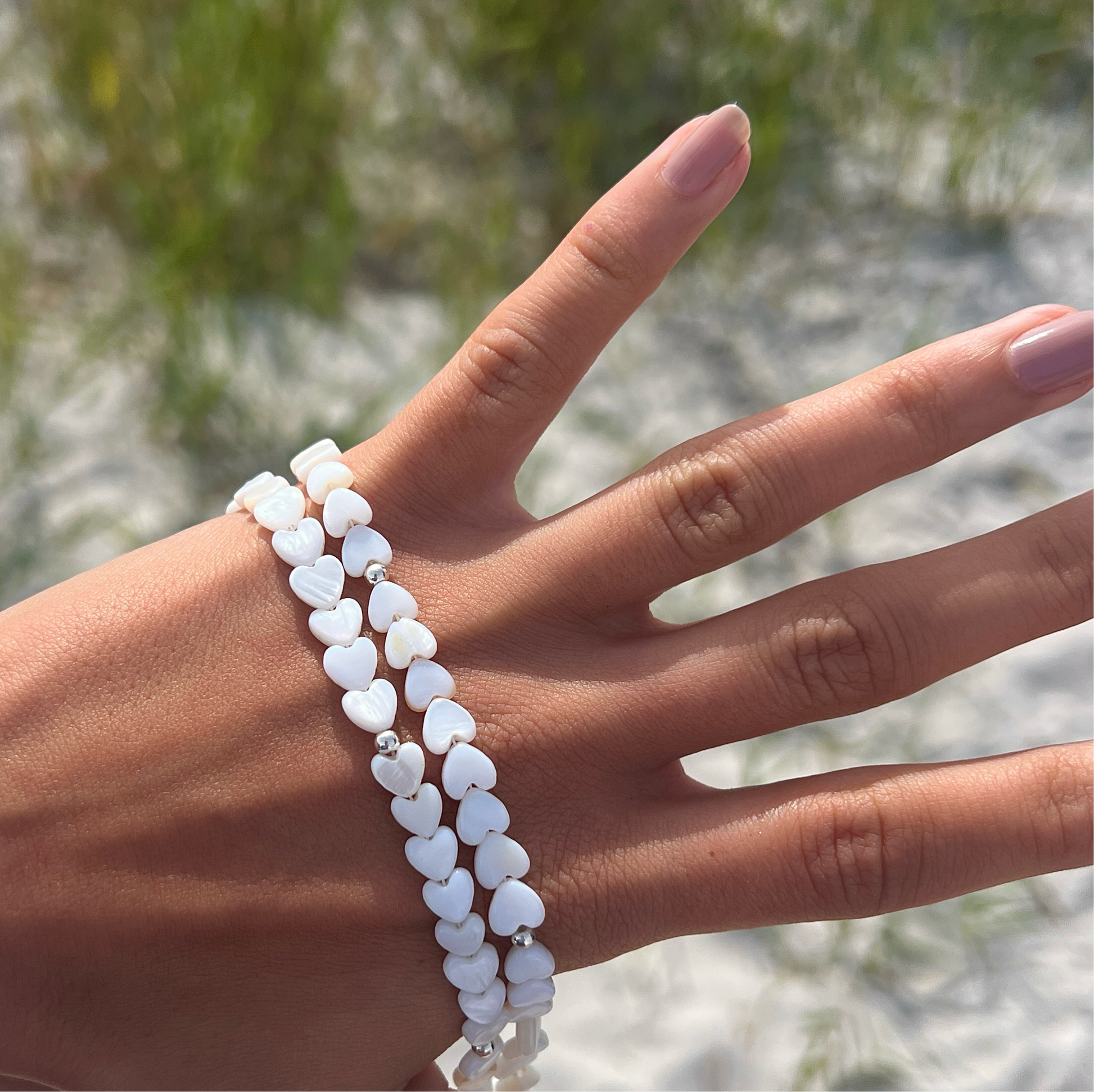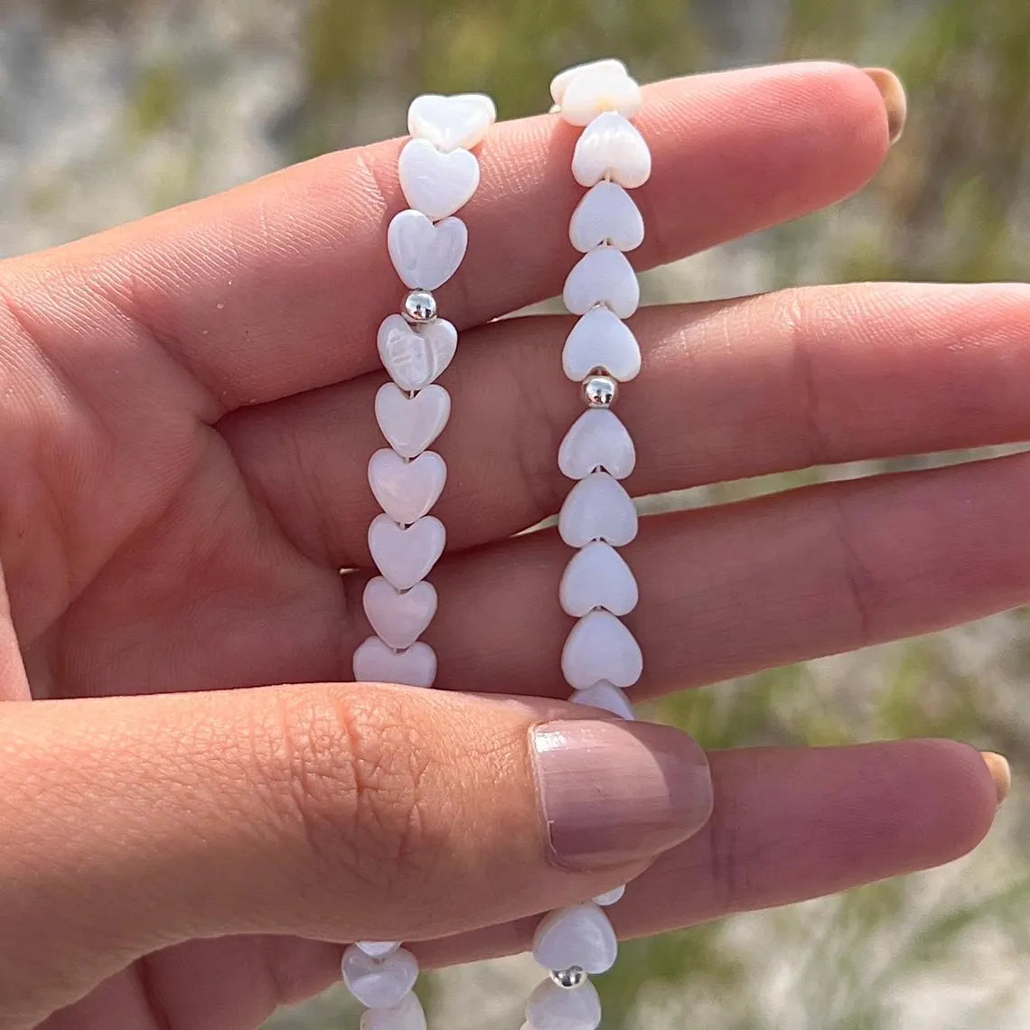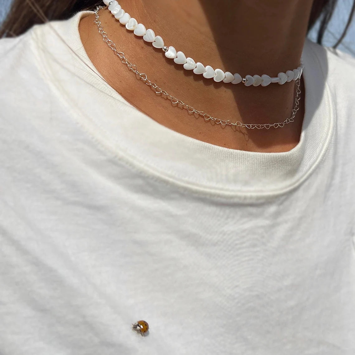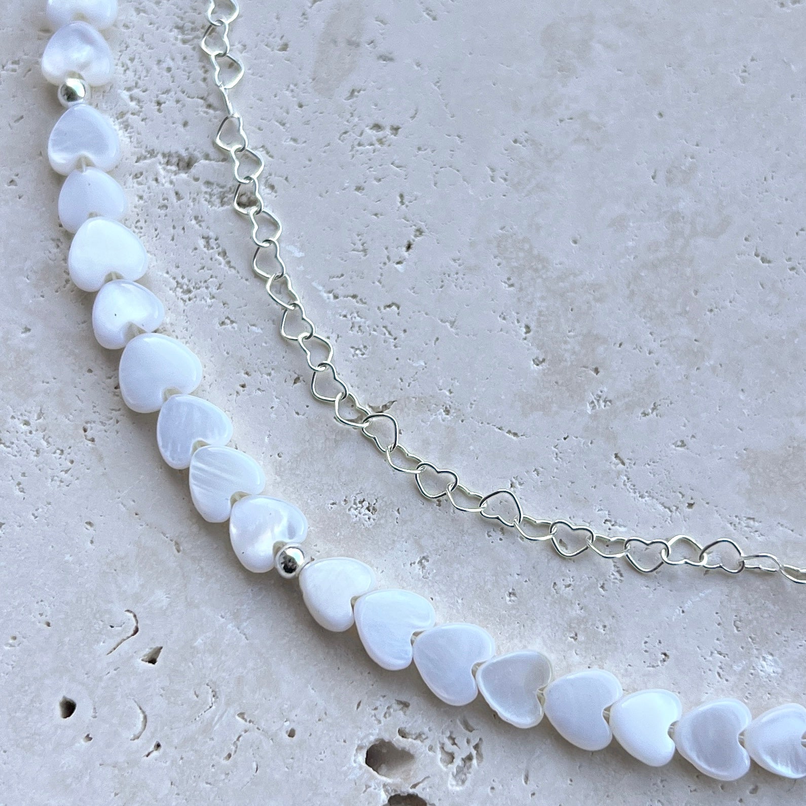 Elegante Kette aus Muschelperlen (Süßwasserperlmutt) mit 925er Silberperlen und Karabinerverschluss.